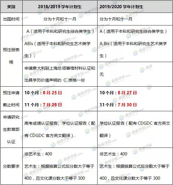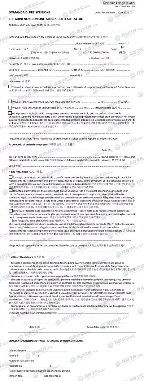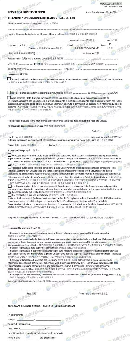 2019/2020学年意大利计划生上海领区预注册招生简章
