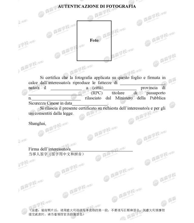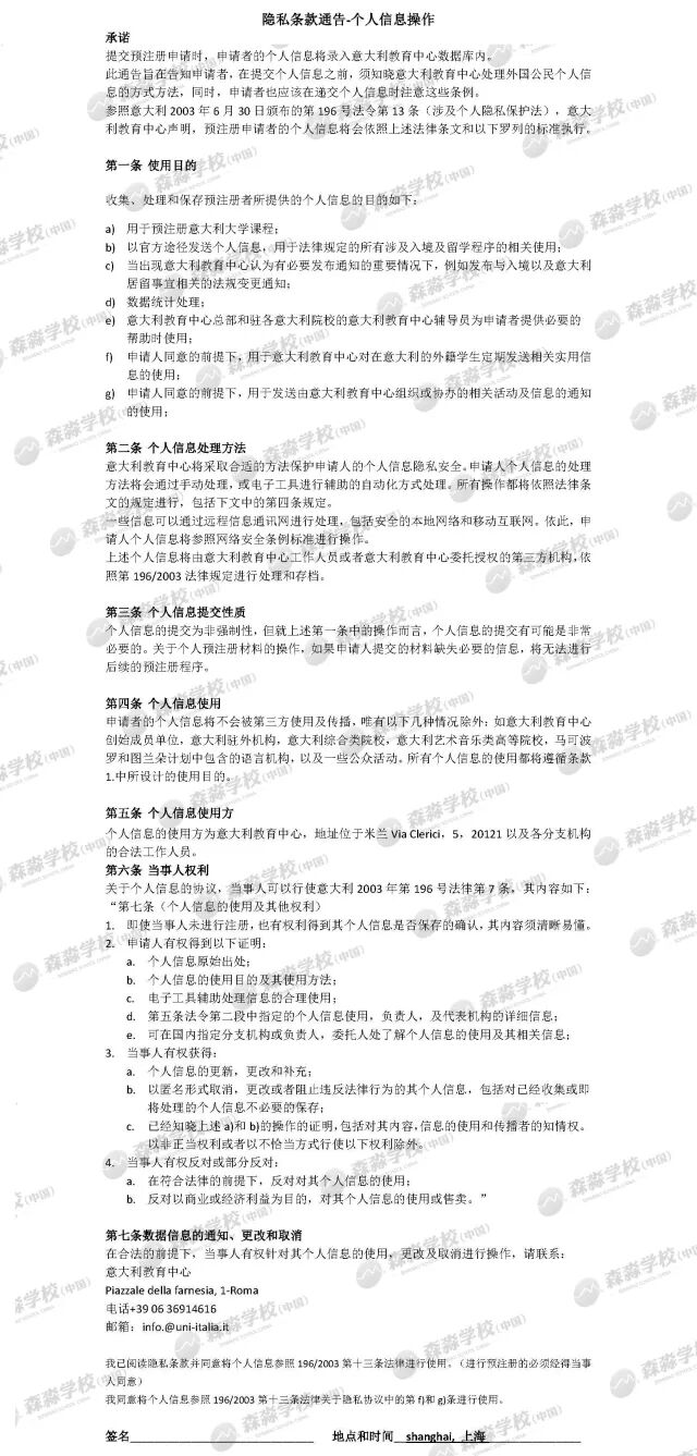 √ 授权意大利教育中心使用个人信息的委托书